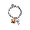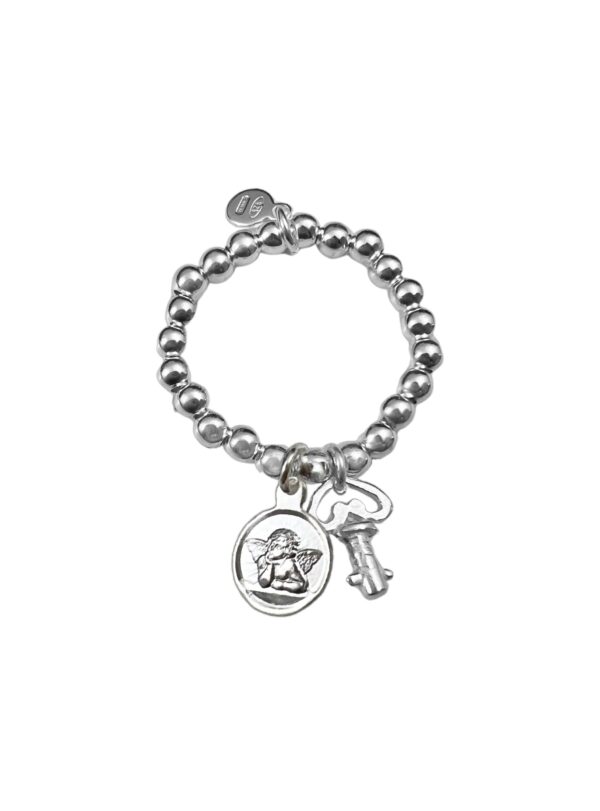 Anello con Sfere in Argento ed elastico interno a doppia trama resistente, con ciondolo chiavetta in Argento e campanellino Chiama Angeli in Argento Rosato.