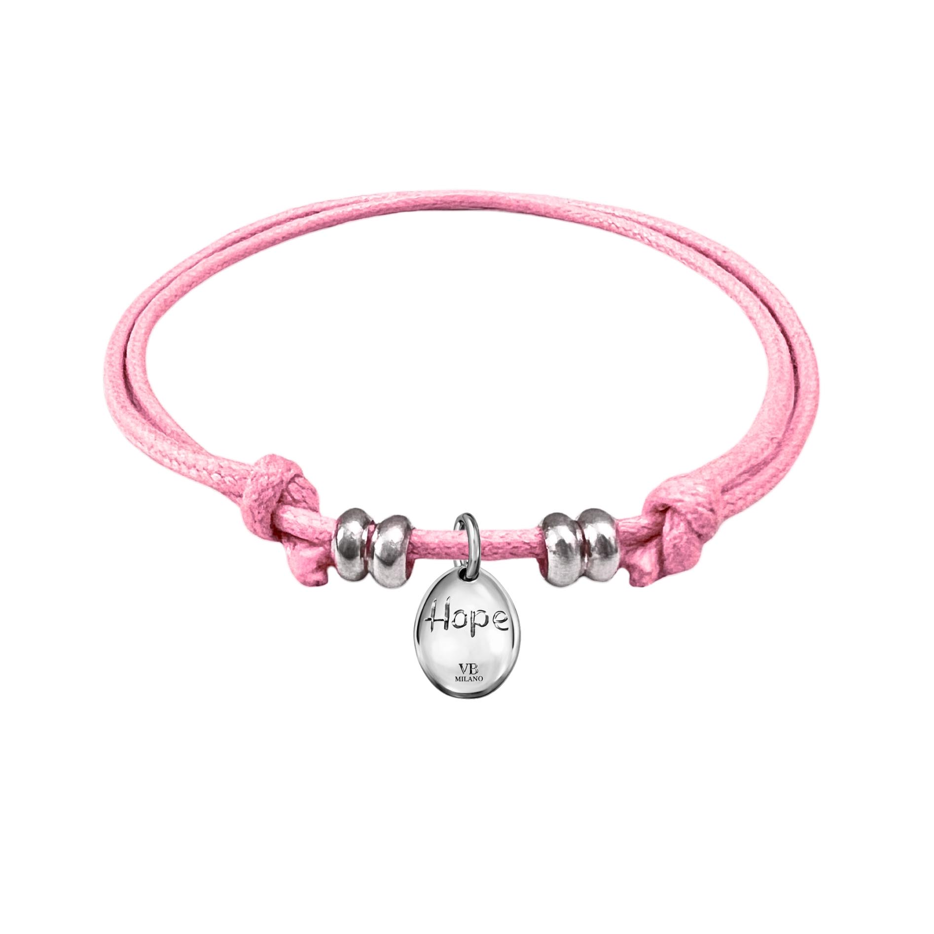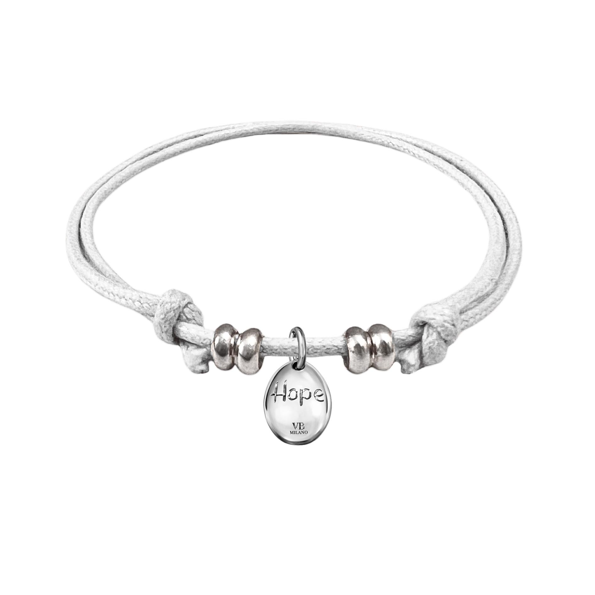 Bracciale Cordino in cotone cerato in varie colorazioni con 4 elementi Pepite in Argento 925 e Ciondolo “Uovo Hope” abbinato.